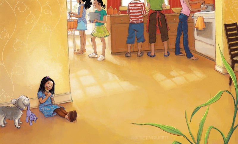 "...The artwork nicely complements the text, as Valiant's warm hues of gold, red, and orange highlight the family's loving relationship. They also capture Cora's feelings through facial expressions. Wide eyes and smiles show the child's joy at cooking with her mother, while a downcast mouth and arched eyebrows illustrate her anxiety that her family won't like her pancit. "- Mary Landrum, Lexington Public Library, KY (November, 2009 issue of School Library Journal)